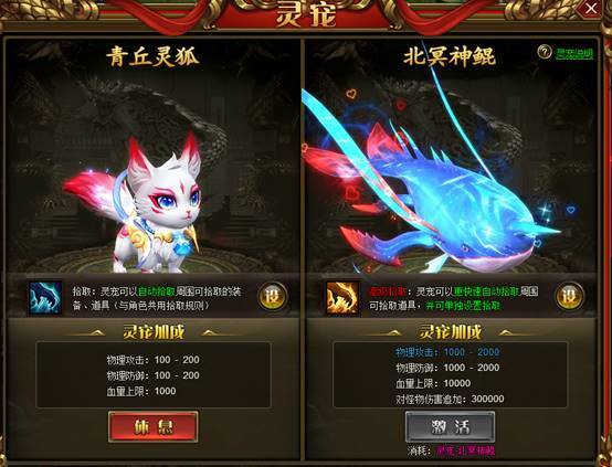 宠物系统 助战宠物伙伴,提升等级可增加大量宠物属性以及主角属性加成。激活宠物天赋可获得特殊战斗效果以及酷炫形象。 灵宠系统 自动拾取小助手,能自动拾取角色周围可拾取的装备、道具。激活可提供角色大量属性加成。
