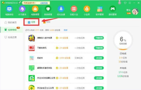 1、领取特权礼包需要360安全卫士等级达到指定等级!如未达到指定等级,可通过完成下方任务提升等级。